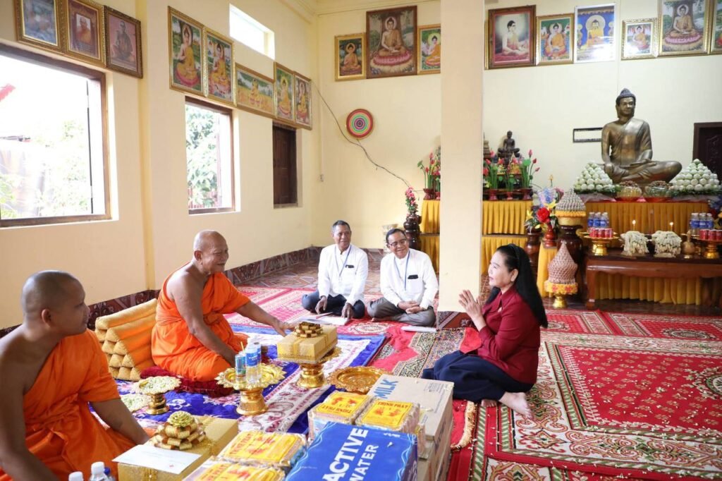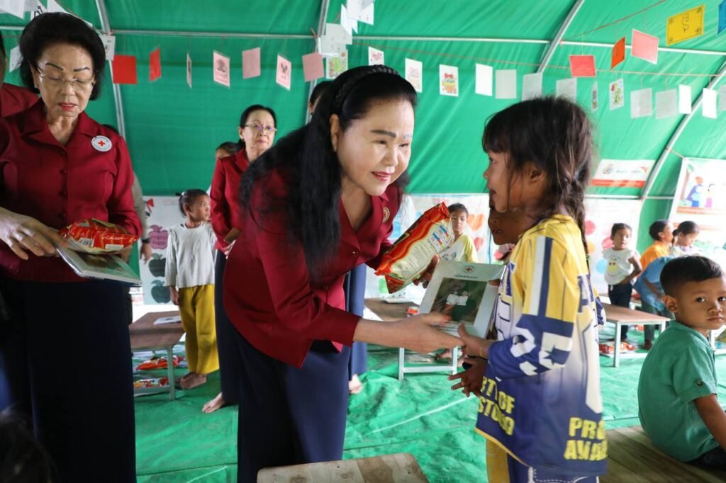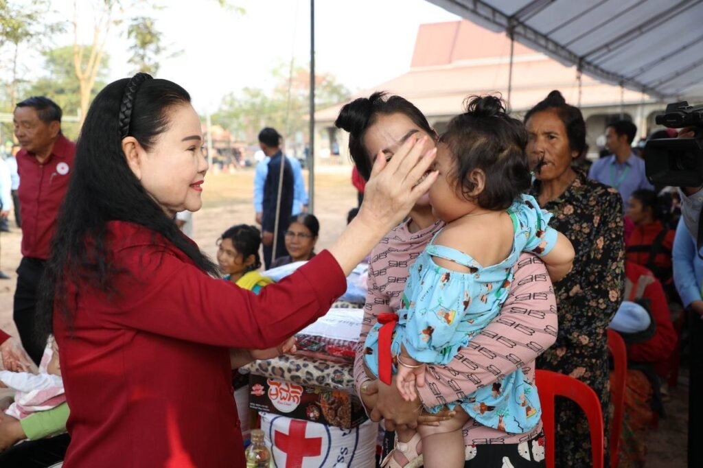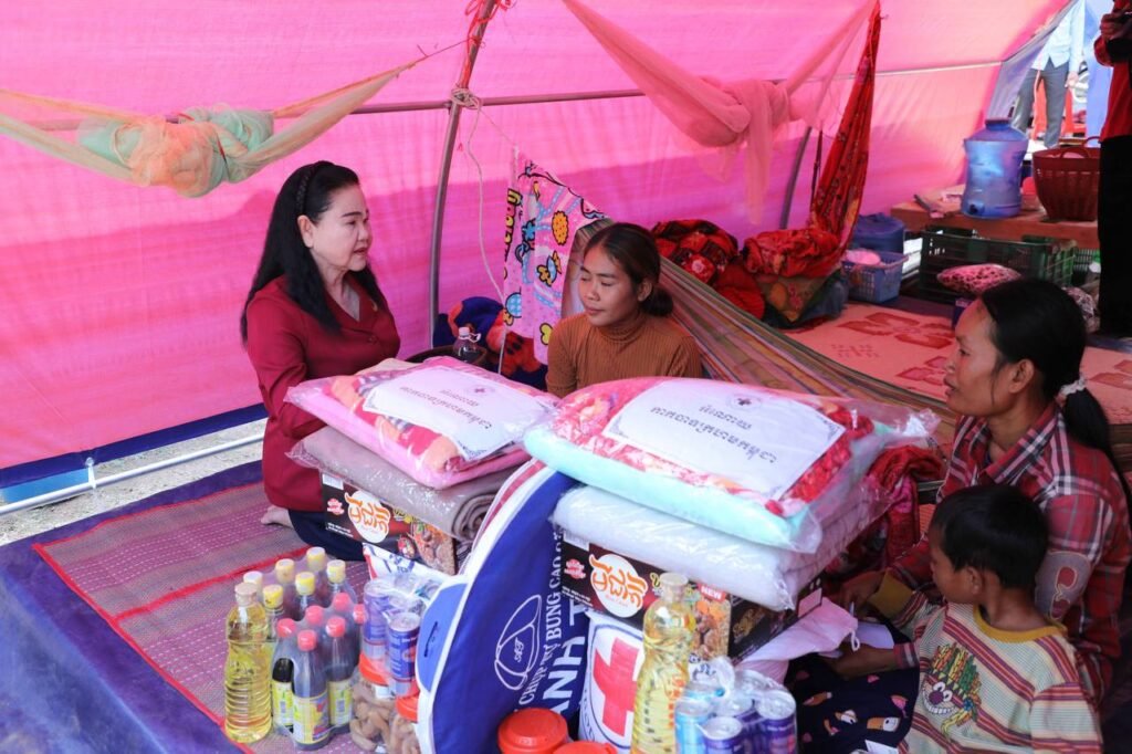 នាកិច្ចសំណេះសំណាលសួរសុខទុក្ខជាមួយប្រជាជនភៀសសឹកទាំងអស់ អ្នកម្ដាយមនុស្សធម៌ សម្តេចកិត្តិព្រឹទ្ធបណ្ឌិត ប៊ុន រ៉ានី ហ៊ុនសែន បានពាំនាំនូវព្រះរាជបន្ទូលរបស់ ព្រះករុណា ព្រះមហាក្សត្រ ជាអម្ចាស់ជីវិតលើត្បូង និងព្រះសវណីយ៍ សម្តេចព្រះមហាក្សត្រី ព្រះវររាជមាតាជាតិខ្មែរ ព្រះប្រធានកិត្តិយស កាកបាទក្រហមកម្ពុជា ជាទីគោរពសក្ការៈដ៏ខ្ពង់ខ្ពស់បំផុត ដែលព្រះអង្គទាំងទ្វេបានផ្តាំផ្ញើសួរសុខទុក្ខ និងក្តីនឹករលឹក ជាពិសេសការគិតគូរពីសុខទុក្ខប្រជានុរាស្ត្ររបស់ព្រះអង្គនៅគ្រប់ទីកន្លែង និងគ្រប់ពេលវេលា ព្រមទាំងសូមជូនពរបងប្អូនប្រជាពលរដ្ឋសូមមានសុខភាពល្អ ដើម្បីបន្តប្រកបរបរចិញ្ចឹមជីវិតតទៅមុខទៀត។