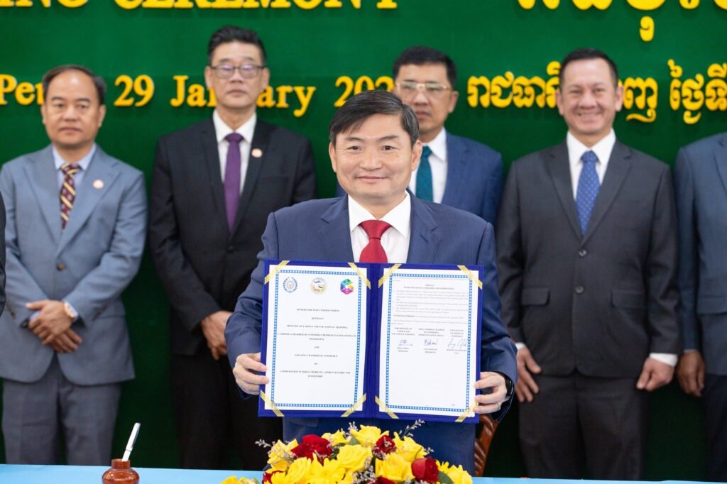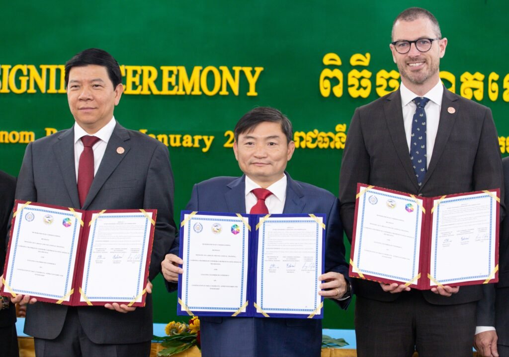 (ភ្នំពេញ)៖ លោក ហេង សួរ រដ្ឋមន្ត្រីក្រសួងការងារ និងបណ្ដុះបណ្ដាលវិជ្ជាជីវៈ លោក តាំង សិទ្ធី ប្រធានការិយាល័យតំណាងសភាពាណិជ្ជកម្មកម្ពុជា ប្រចាំទីក្រុងម៉ែលប៊ន និងលោក Jeremy Crawford នាយកប្រតិបត្តិសភាពាណិជ្ជកម្មប្រចាំទីក្រុងហ្គីឡុង នៃរដ្ឋវីតូរីយ៉ា ប្រទេសអូស្ត្រាលីបានចុះអនុស្សរណៈនៃការយោគយល់គ្នា (MoU)ស្តីពី «សហប្រតិបត្តិការនៅក្នុងការផ្លាស់ប្តូរជំនាញ ការបណ្ដុះបណ្ដាលសិស្សហ្វឹកហាត់ និងការហ្វឹកហាត់ការងារ» នាព្រឹកថ្ងៃទី២៩ ខែមករា ឆ្នាំ២០២៦ នាទីស្តីការក្រសួង។ គោលបំណងដ៏សំខាន់នៃ MOU នេះគឺដើម្បីបង្កើតកិច្ចសហការលើការបណ្តុះបណ្តាលសិស្សហាត់ការ និងការអនុវត្តការងារជាក់ស្តែងតាមស្តង់ដាអូស្រ្តាលី។ នេះជាក្របខណ្ឌនៃកិច្ចសហប្រតិបត្តិការដ៏មានអត្ថប្រយោជន៍ សំដៅលើការសហការគ្នានៅក្នុងនោះរួមមាន៖ (១)ការអភិវឌ្ឍ និងការអនុវត្តកម្មវិធីសិស្សហាត់ការ និងកម្មវិធីហាត់ការងារ (២)ការបញ្ជូន និងការទទួលសិស្ស និងអ្នកហ្វឹកហាត់ សម្រាប់ការផ្លាស់ប្តូរជំនាញ ការសិក្សាសិស្សហាត់ការ និងការហាត់ការងារ នៅប្រទេសអូស្ត្រាលី និង (៣)ការលើកកម្ពស់ និងការសម្របសម្រួលបណ្តាញ និងភាពជាដៃគូ រវាងស្ថាប័នបណ្តុះបណ្តាល។ កិច្ចសហការនេះ ក៏នឹងបើកផ្លូវឱ្យមានកម្មវិធីអាហារូបករណ៍ និងការផ្លាស់ប្តូរផងដែរ ដែលផ្តល់ឱកាសដល់សិក្ខាកាមកម្ពុជា គ្រូបណ្តុះបណ្តាល TVET និងសិស្សនិស្សិតចូលរួមក្នុងការសិក្សា និងវគ្គបណ្តុះបណ្តាលរយៈពេលខ្លី និងរយៈពេលវែង ដែលជួយលើកកម្ពស់ការផ្លាស់ប្តូរវប្បធម៌ និងការផ្ទេរជំនាញផងដែរ។ នាឱកាសនោះ លោករដ្ឋមន្ត្រី បានវាយតម្លៃខ្ពស់ចំពោះកិច្ចសហប្រតិបត្តិការដ៏មានសារៈសំខាន់នេះ ដែលជាយន្តការមួយក្នុងការកសាងមូលធនមនុស្សឱ្យមានផលិតភាពខ្ពស់ ជំនាញច្បាស់លាស់ប្រកបដោយស្តង់ដា និងមនសិការវិជ្ជាជីវៈបន្ថែមទៀត ដើម្បីឆ្លើយតបតាមតម្រូវការទីផ្សារការងារទាំងក្នុង និងក្រៅប្រទេស ក៏ដូចជាការវិវត្តយ៉ាងឆាប់រហ័សនៃបច្ចេកវិទ្យាឌីជីថលសកល។ លោកបានគូសបញ្ជាក់ថា កិច្ចសហការនេះ ជាការបង្ហាញនូវទំនាក់ទំនងល្អ រវាងកម្ពុជា និងអូស្ត្រាលី ហើយក៏ជាការបើកទំព័រថ្មី ប្រកបដោយអត្ថន័យក្នុងប្រវត្តិសាស្ត្រលើវិស័យបណ្តុះបណ្តាលវិជ្ជាជីវៈរបស់កម្ពុជា។ ទន្ទឹមនឹងនេះ លោករដ្ឋមន្រ្តីមានការជឿជាក់យ៉ាងមុតមាំថា តាមរយៈកិច្ចសហប្រតិបត្តិការនេះ កម្ពុជាអាចជំរុញការអភិវឌ្ឍធនធានមនុស្ស ប្រកបដោយគុណភាពខ្ពស់ស្របតាមស្តង់ដាការងារ ដែលអាចឆ្លើយតបនឹងតម្រូវការកម្លាំងពលកម្មក្រៅប្រទេសទាំងពេលបច្ចុប្បន្ន និងអនាគតផងដែរ៕